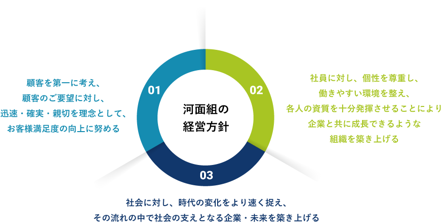 その問題や課題に対し、総合建設業という立場で可能な限り力を尽くすことが「河面組のソリューション」です。