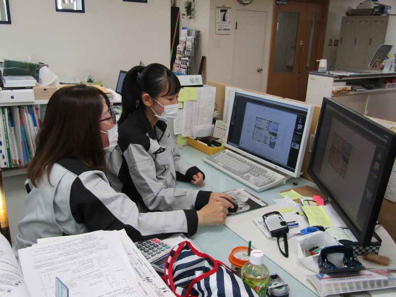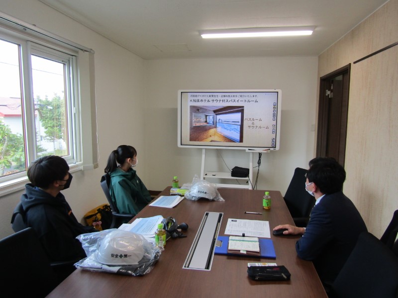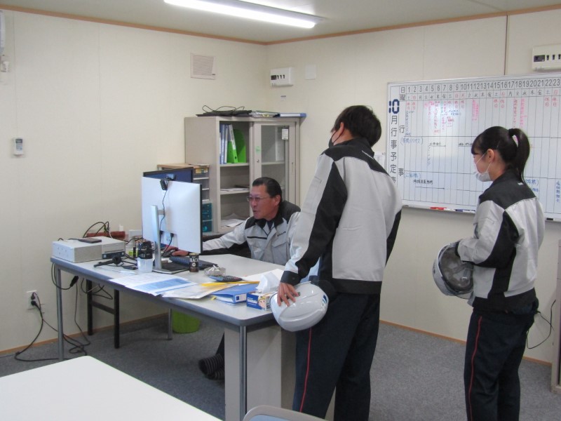 初日、総務部にて「河面組」の会社内容、仕事内容の研修