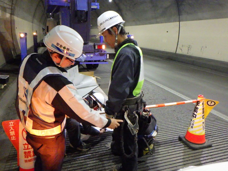 点検項目:高所作業時の安全帯着用及び作業時の中央車線はみ出し防止策