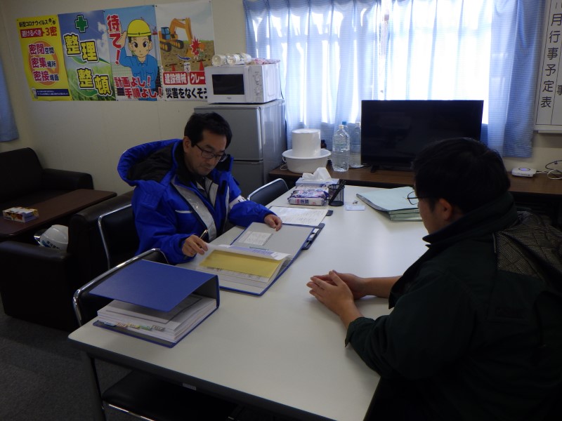 点検項目:交通規制車の輪止め及びクレーン使用による資材搬入の安全