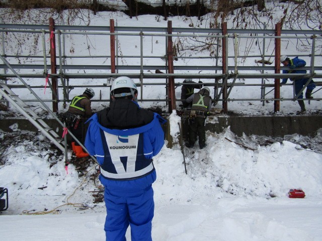 点検項目:落石止柵設置作業時の安全確認