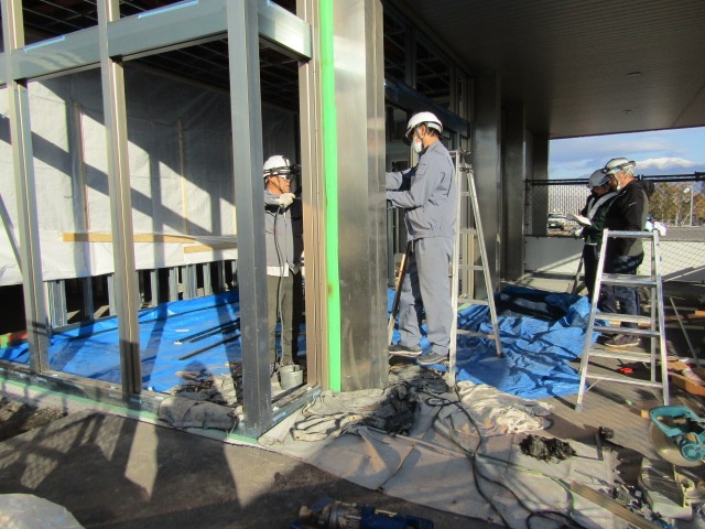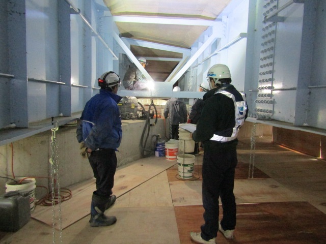 点検項目:吊り足場設置作業時の安全確保(ハーネス着用)及び、粉塵用防護マスク着用の指摘及び確認
