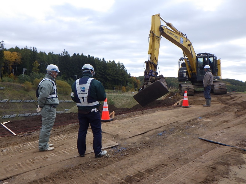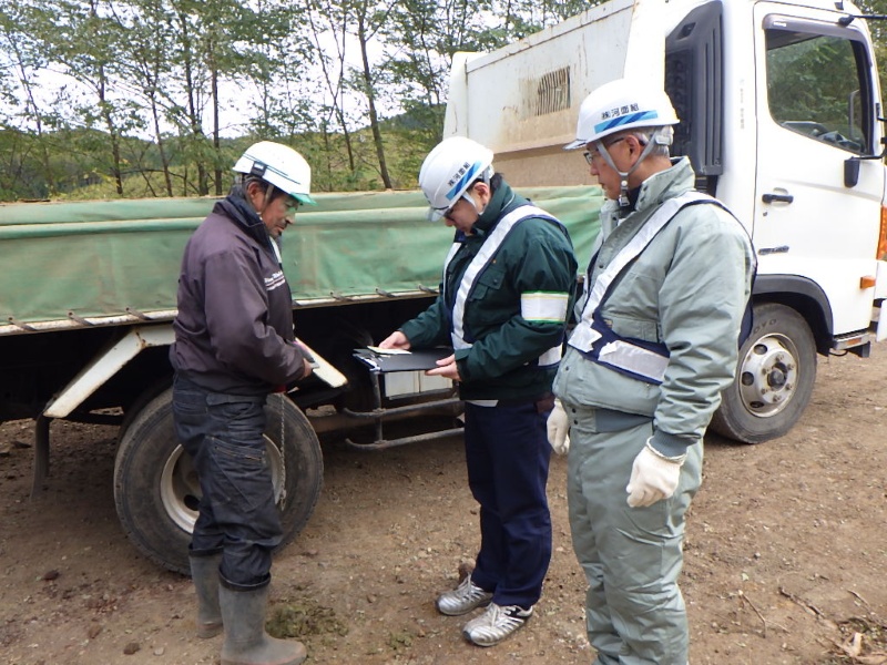 点検項目:斜面作業時の作業員の注意事項と重機使用時の安全確保及び有資格者証の指摘及び確認