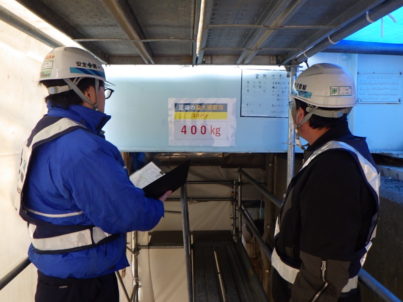 点検項目:足場昇降時の転倒及び電動工具使用時の注意事項確認