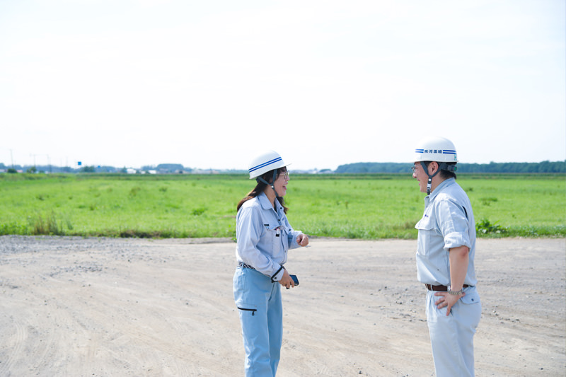 当社は、公共工事が9割ほどを占めています(※年による)。道路、橋梁、河川、農地など、あらゆる分野において実績が豊富で、役所からの信頼も厚く、審査などスピーディー。業務がスムーズに進み、働きやすい環境です。